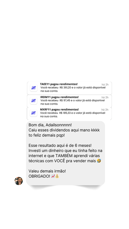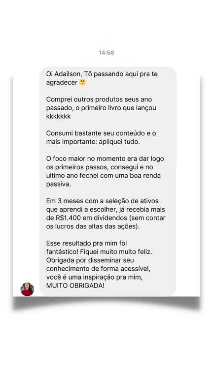 ao avançado, com as principais técnicas para potencializar seus resultados e criar fontes de renda que te fará alcançar a independência financeira através dos dividendos.